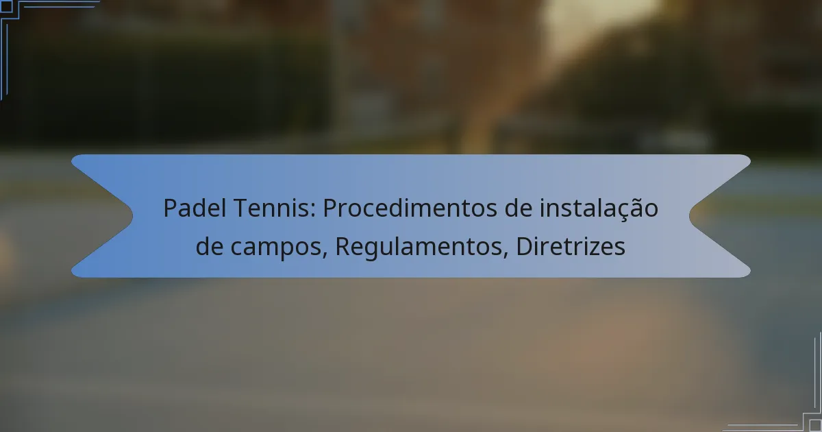 Padel Tennis: Procedimentos de instalação de campos, Regulamentos, Diretrizes