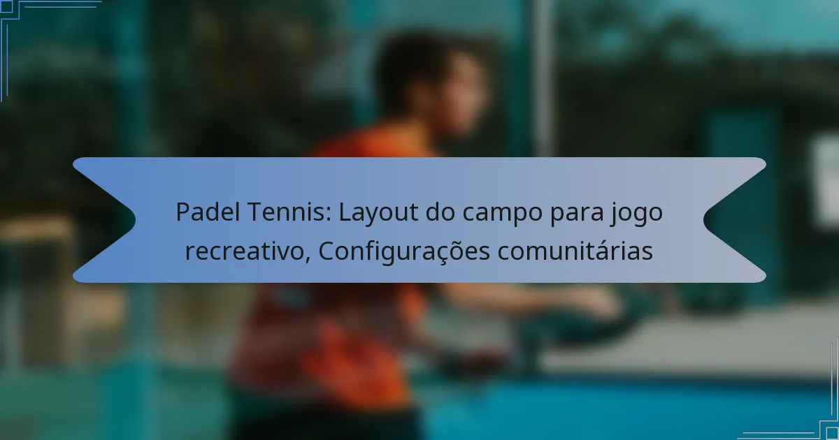 Padel Tennis: Layout do campo para jogo recreativo, Configurações comunitárias